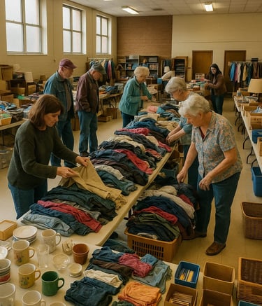 We also host seasonal community sales featuring gently used items, with proceeds supporting local ministries and outreach efforts. These events foster connection while helping meet practical needs in our community.